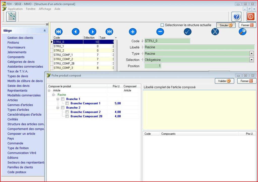 Un logiciel construit à partir des données avec des menus, la gestion de langues